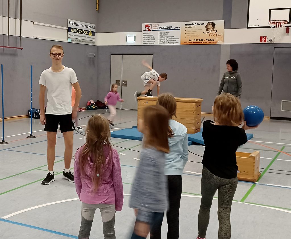 Kaum ist die diesjährige Schülerassistentenausbildung abgeschlossen, ist unsere Sportjugendkoordinatorin Annett Lietze schon in den Vereinen der Teenager unterwegs. Gestern besuchte sie Vincent in seinem Verein SV Motor Hainichen 1949 e.V.. Bereits zu Beginn des Kindertrainings vermittelte der 16-Jährige den Kids die Wichtigkeit von Erwärmung und setzte dabei auf Partizipation. So durfte jeder der anwesenden Bewegungshungrigen […]