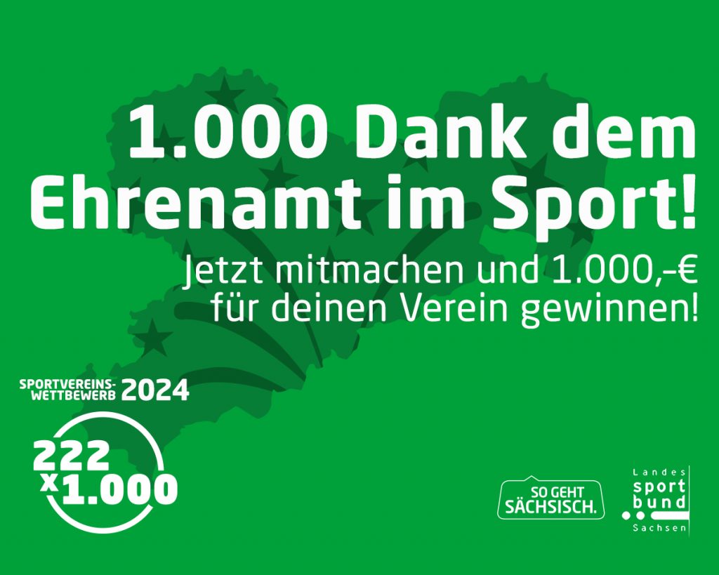 Gemeinsam mit der sächsischen Staatskanzlei und der Kampagne „So geht sächsisch.“ startet der Landessportbund Sachsen einen Wettbewerb, durch den das bürgerschaftliche Engagement und die Leistung der in den sächsischen Sportvereinen engagierten Personen unterstützt und anerkannt werden soll. Der Landessportbund Sachsen sucht in Kooperation mit „So geht sächsisch.“ 222 Sportvereine, die einem besonders engagierten Menschen in […]